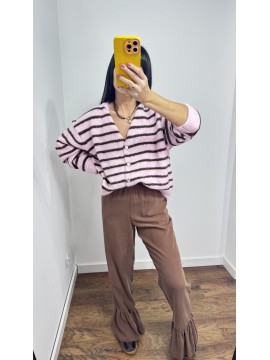 Dodaj do Ulubionych Dodaj do koszyka Zobacz opcje Sweter MILO kolor różowy w brązowe paski- rozpinany na... 179,00 zł