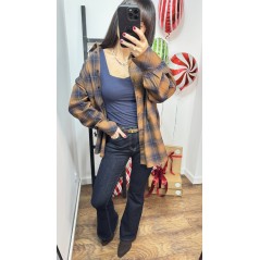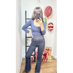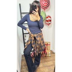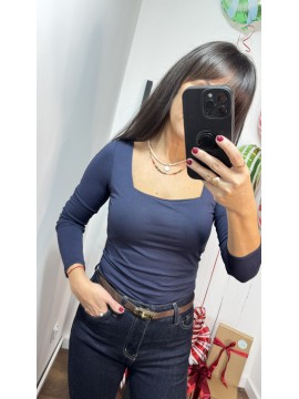 Bluzka z długim rękawem ,z dekoltem FAME - kolor Granatowy