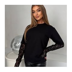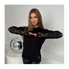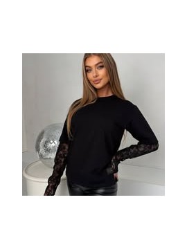 Bluzka MIA wykończona koronkowymi rękawami - kolor czarny