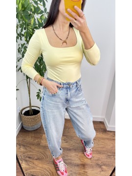 Bluzka z długim rękawem ,z kwadratowym dekoltem . Posiada podwójny materiał w biuście.