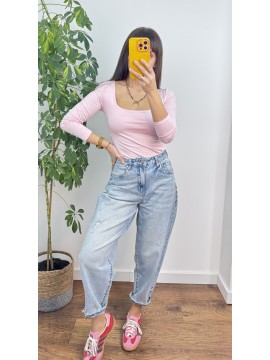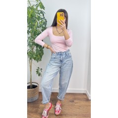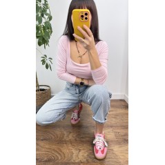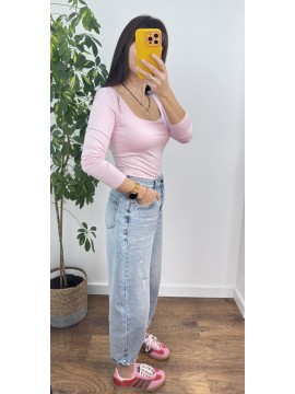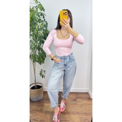 Bluzka z długim rękawem ,z dekoltem FAME - kolor jasny róż