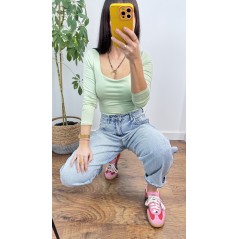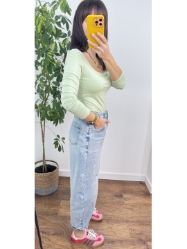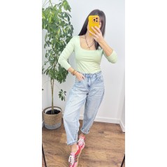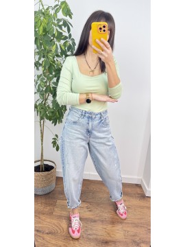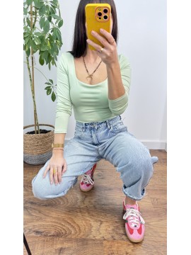 Bluzka z długim rękawem ,z dekoltem FAME - kolor miętowy
