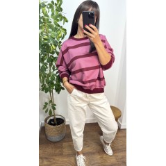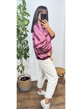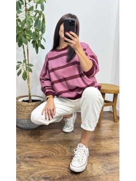 Bluza MILANO bez kaptura - ciemny róż w bordowe paski - Polska produkcja