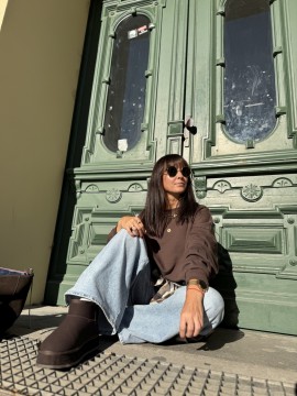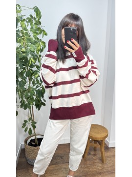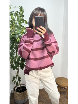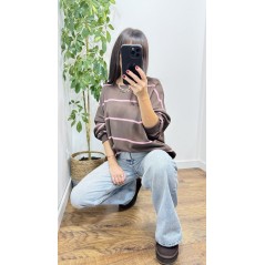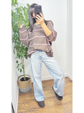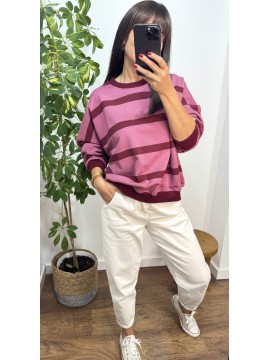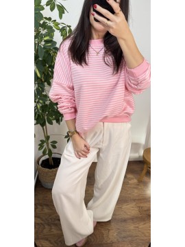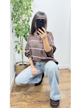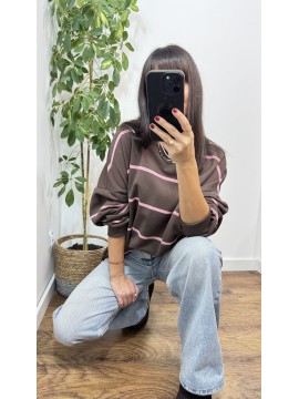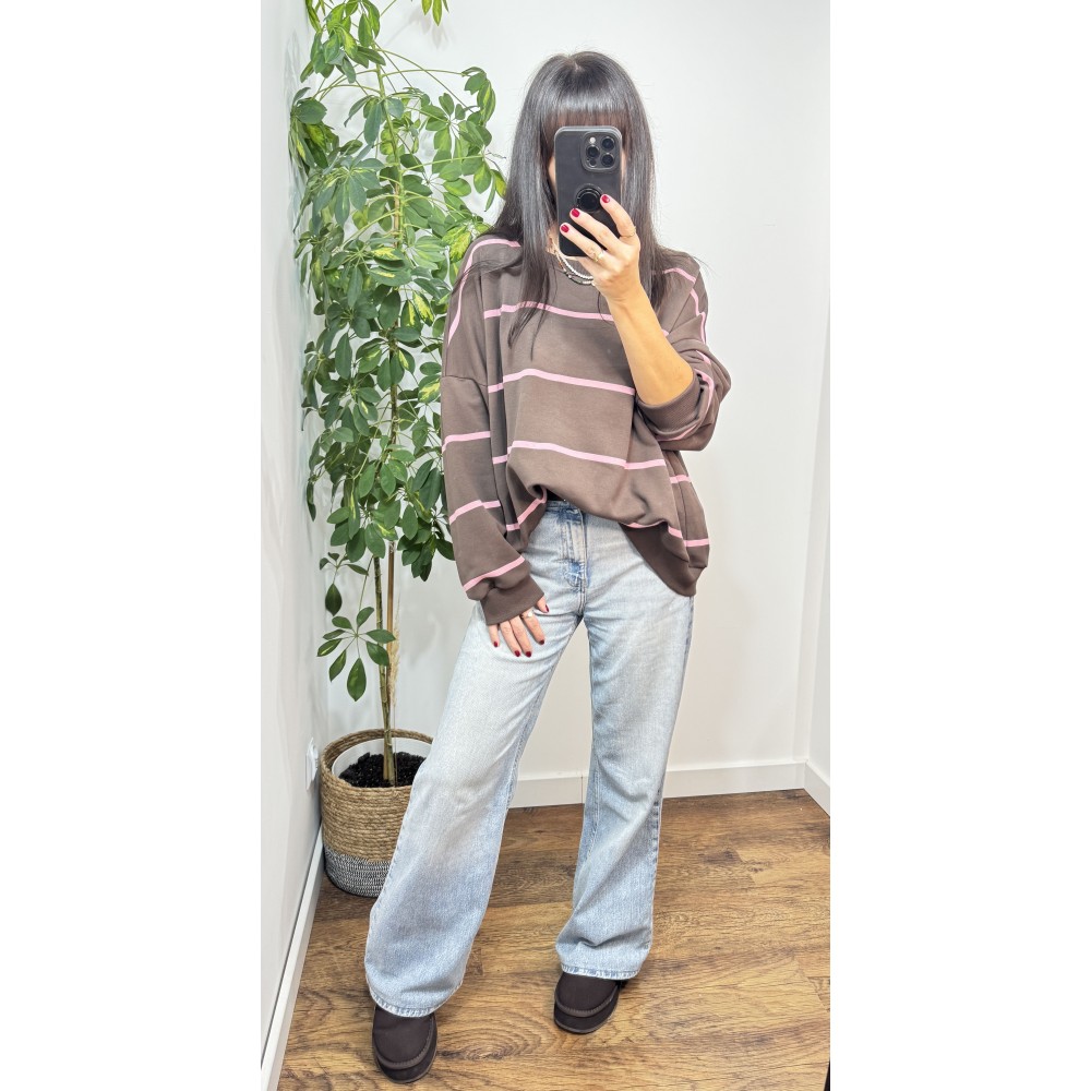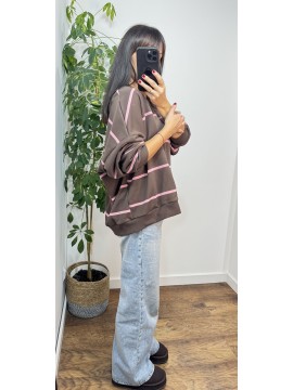 Bluza SUE bez kaptura - kolor brązowy w różowe paski