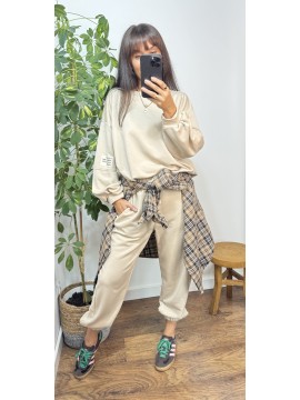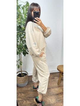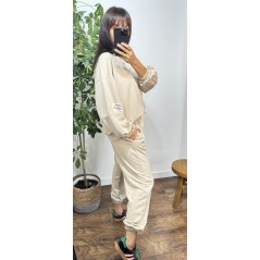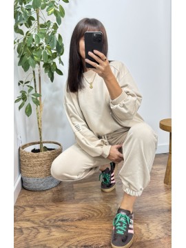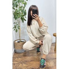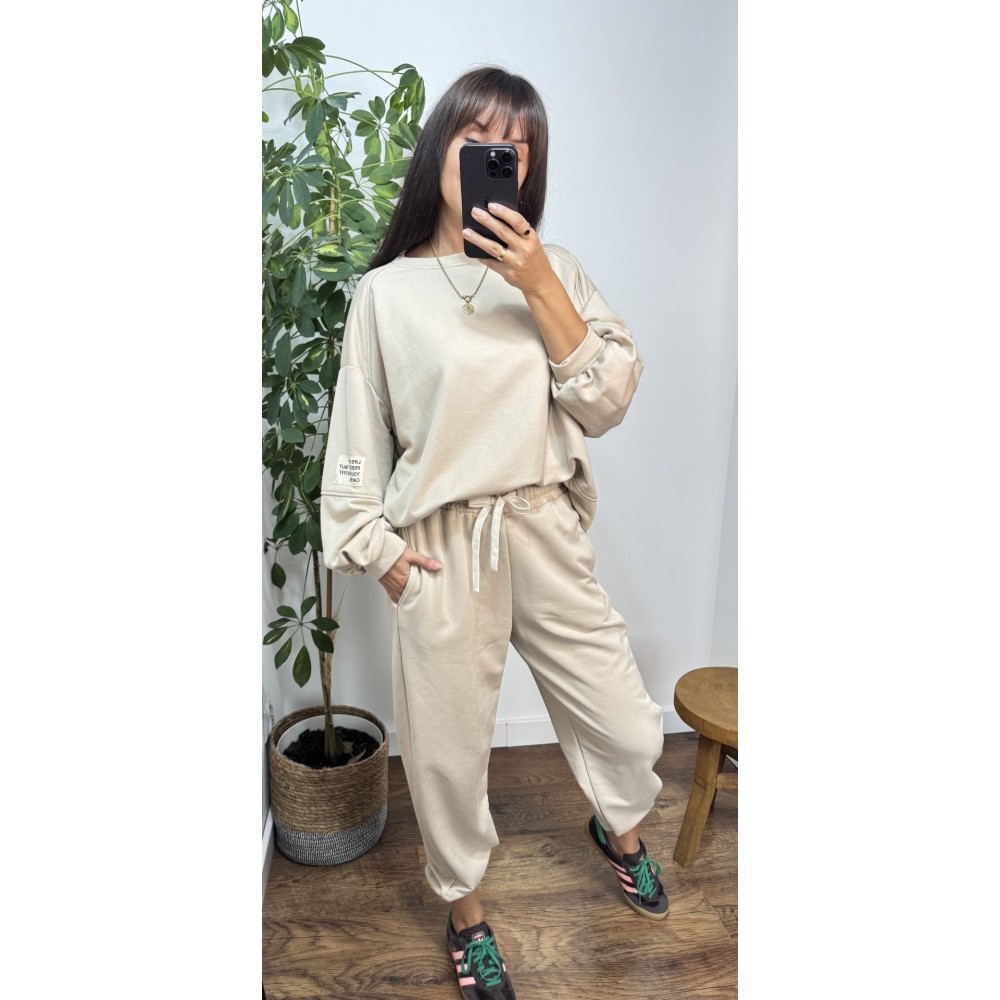 Dres AZARA - komplet bluza ze spodniami -kolor beżowy