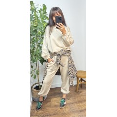 Dres AZARA - komplet bluza ze spodniami -kolor beżowy. Bluza typu oversize.
