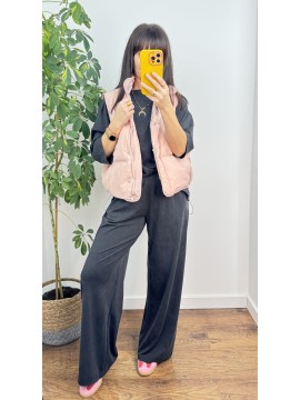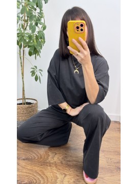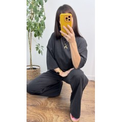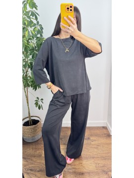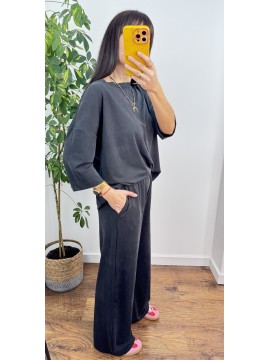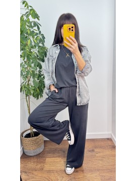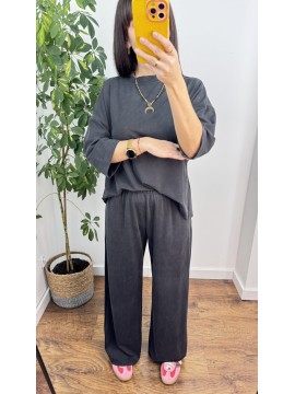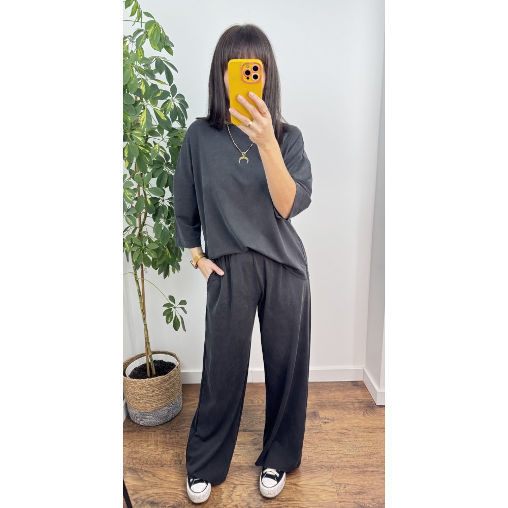 KOMPLET LUISE - bluzka z rękawem 3/4 i spodnie z szeroką nogawką , kolor grafitowy