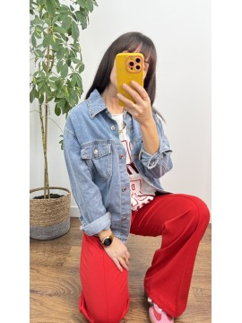 Koszula jeansowa SARA- kolor niebieski - zapinana na guziki