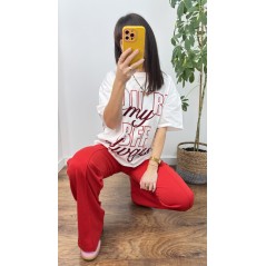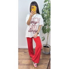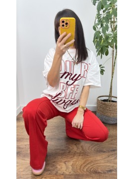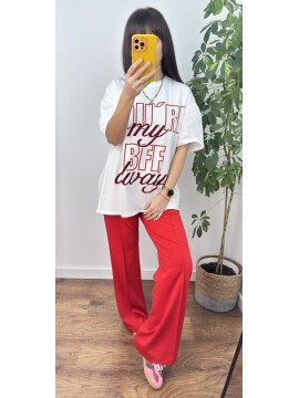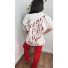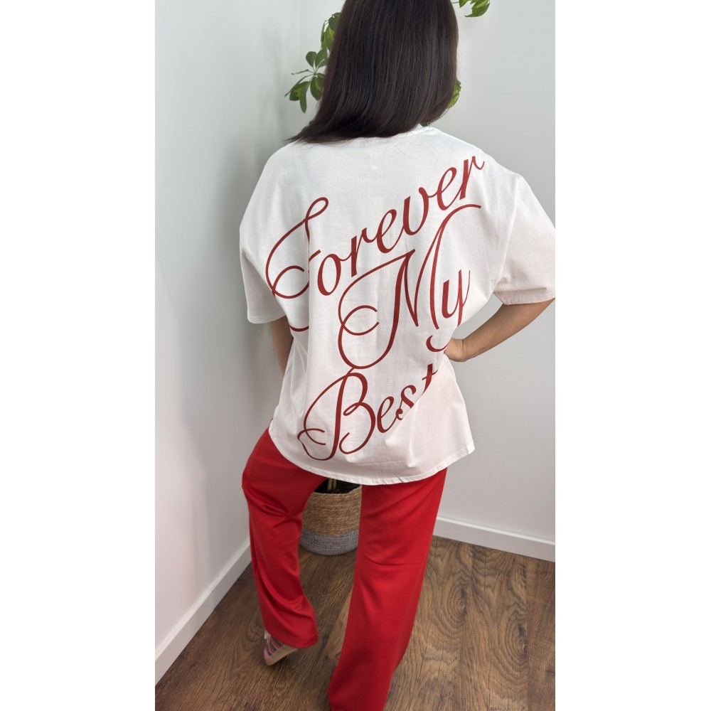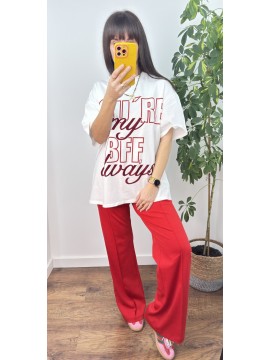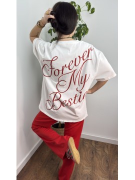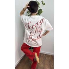 Koszulka bawełniana BFF - kolor biały z czerwono bordowym napisem