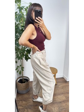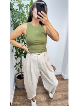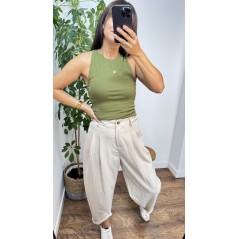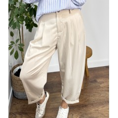 Spodnie balloon PALMER - kolor beżowy. Zapinane na guzik.Wysoki stan. Z tyłu posiadają gumkę co zdecydowanie wpływa na komfort noszenia. Świetnie sprawdzą się w codziennych stylizacjach jak i bardziej formalnych.