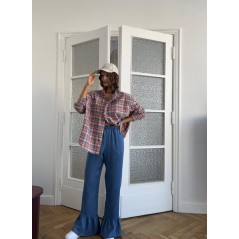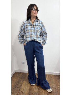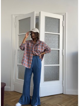 Spodnie DISCO z falbanką - kolor ciemny denim
